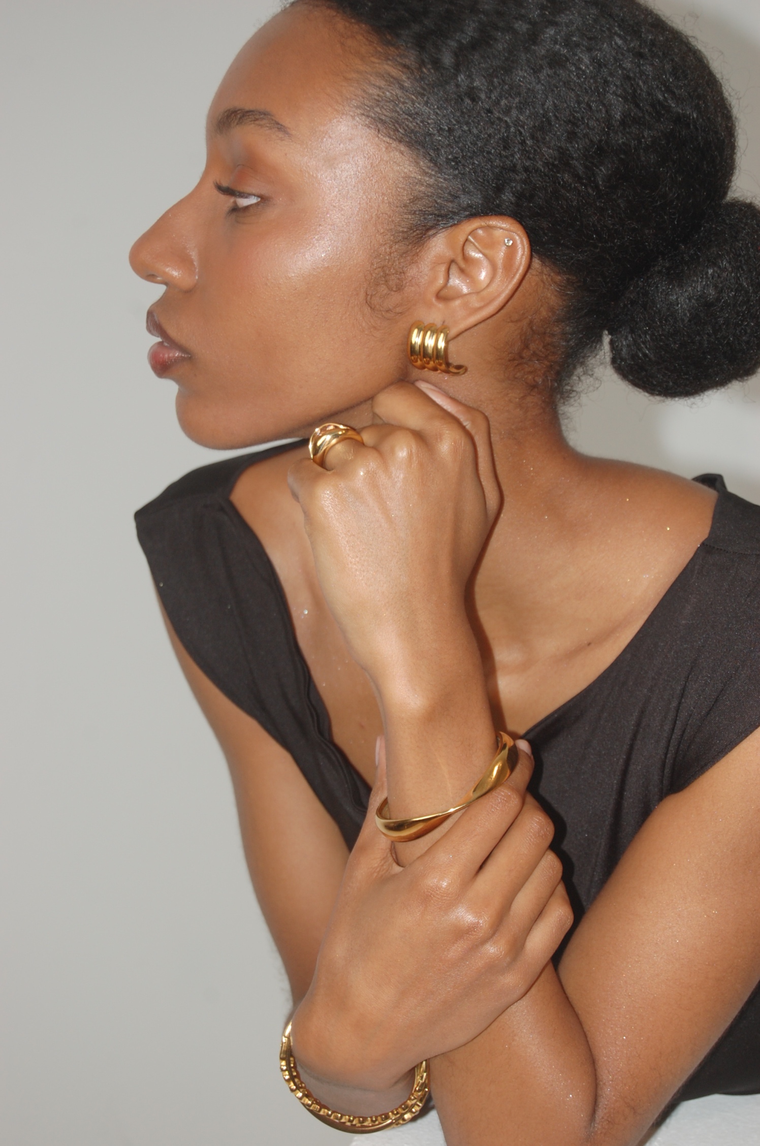 Bold yet refined, these gold-toned earrings are designed to turn heads. Their sculptural triple-dome silhouette adds instant polish to any outfit, making them perfect for date nights, elegant events, or elevating your everyday look. Lightweight, durable, and luxuriously finished, they bring timeless glamour with a modern edge.