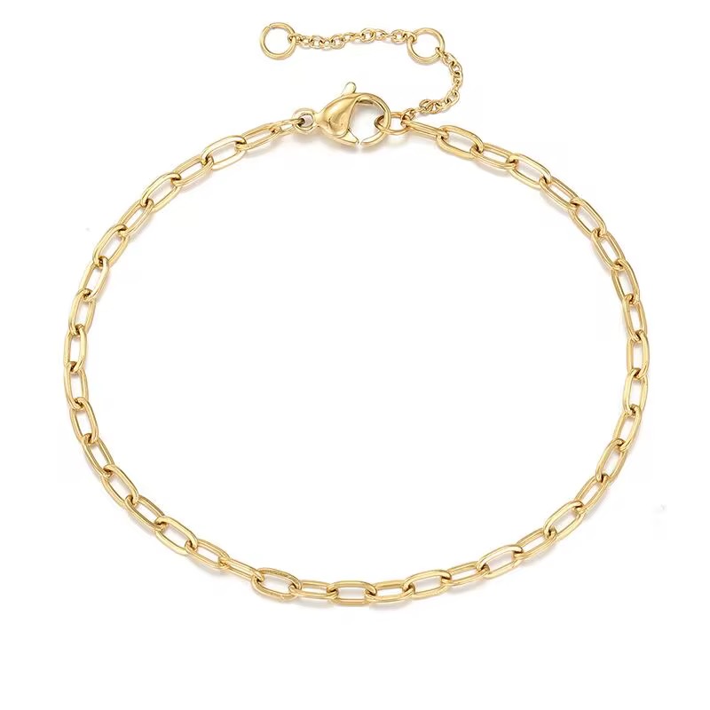 Timeless and versatile, this gold-toned stainless-steel bracelet adds effortless sophistication to any look. Its sleek link design makes it the perfect everyday piece whether you’re dressing for brunch, the office, or a night out. Layer it with other bracelets for a statement stack or wear it solo for a minimalist touch of luxury.