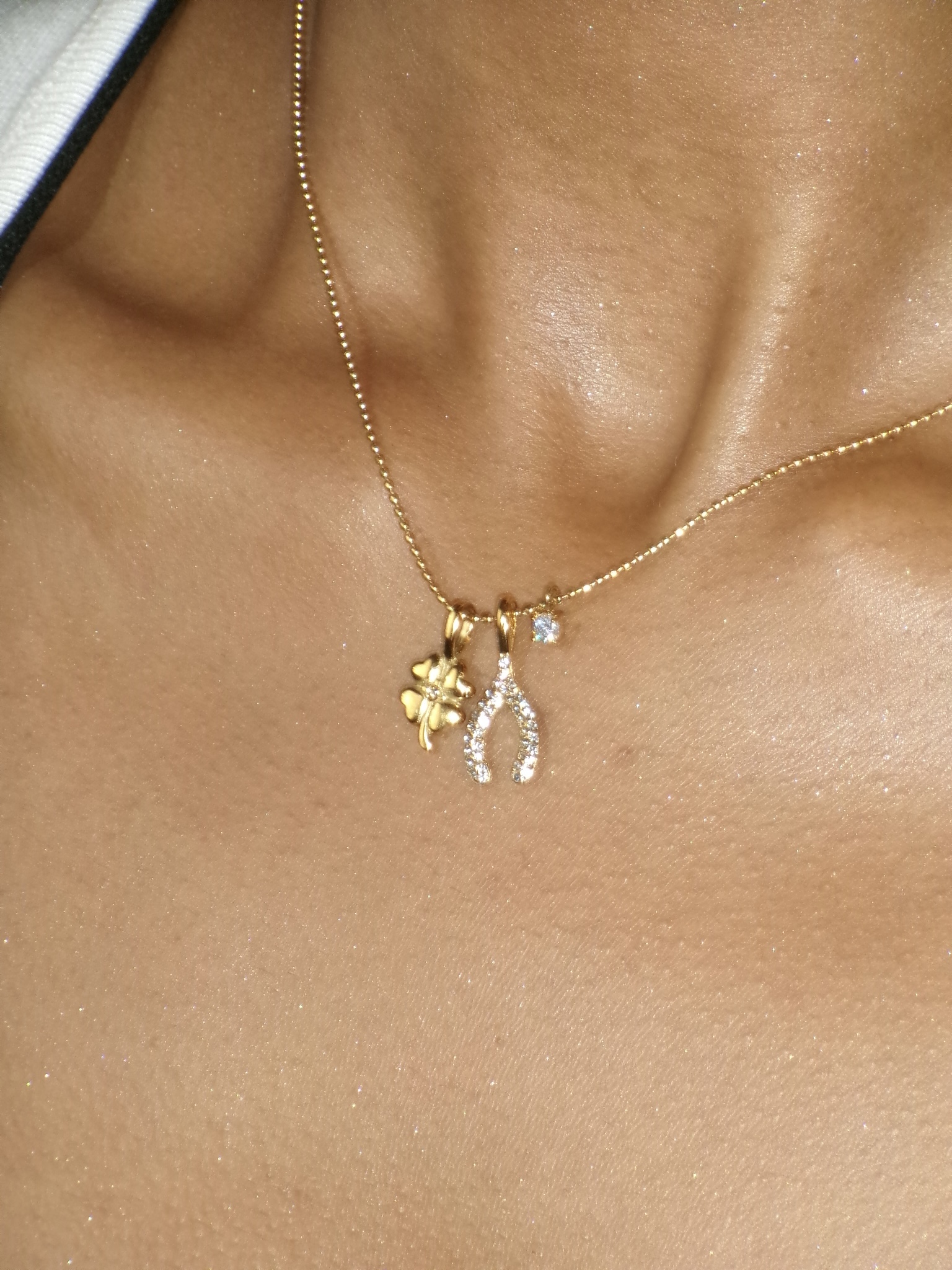 Manifest good fortune and style with this charming gold-tone necklace, featuring a striking pendant that unites a sparkling four-leaf clover with a crystal-encrusted wishbone a meaningful and durable piece that serves as a perfect daily talisman or a thoughtful, sophisticated accent to layer over a deep V-neck for any special occasion.